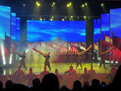 http://randymiller.com/portfolio/impression-west-lake/ http://www.flickr.com/photos/bukakke/sets/72157624404780008/with/4754559788/ Sie war zwischendurch ziemlich beeindruckend und wunderschön. Dabei gab es z.B. auch Trommler, ähnlich zu denen am Anfang der Beijing-Olympiade-Eröffnungsshow.