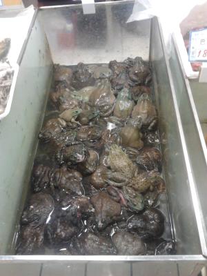 Lebende Frösche im Supermarkt zum Verkauf
