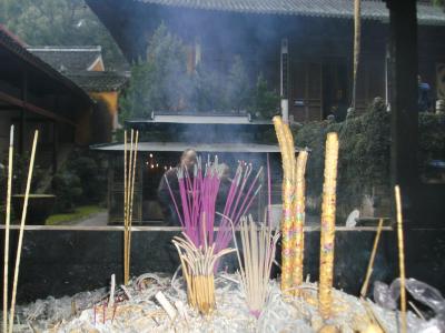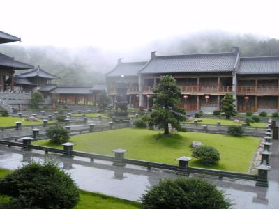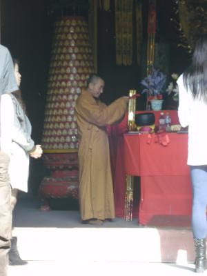 Danach haben wir uns noch einen Tempel angesehen (auch mal was Neues), diesmal den Guoqing-Tempel. Er wurde im 6. Jahrhundert n.Chr. gebaut und war die Heimat des Tiantai-Buddhismus. Diese Schule wird oft als diejenige chinesische buddhistische Schule angesehen, die sich als erste wirklich von der originalen indischen Lehre emanzipiert hatte (andere Beispiele sind Chan- (japanisch: Zen) und Reines-Land-Buddhismus). Der Tiantai-Buddhismus verbreitete sich später teils auch in Japan (Tendai) und Korea (Cheontae).