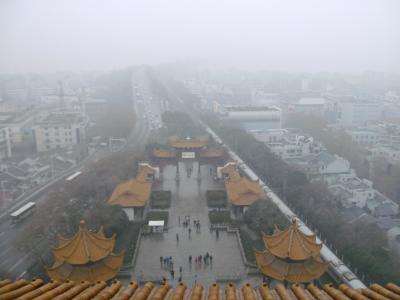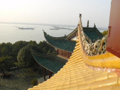 Inmitten der grauen, großen, lauten (ich mag sie trotzdem, z.B. wegen reganmian = heiße trockene Nudeln, die man zum Frühstück heißt, auch gerne scharf) Stadt Wuhan steht ihr Wahrzeichen, der berühmte Gelber-Kranich-Turm (natürlich wieder aufgebaut in den 1980ern), ähnlich dem Yueyang-Turm, nur größer.