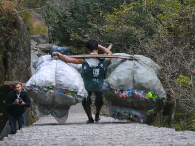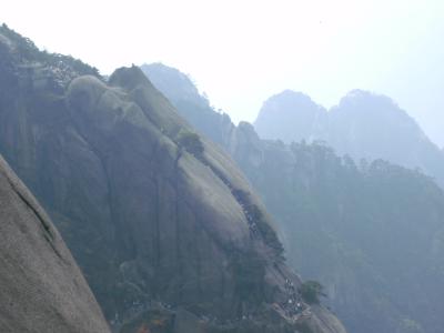 Wie anscheinend öfters bei chinesischen Bergen gibt es hier viele, viele Stufen. Hier liefen auch Lastenträger herum und man konnte sich auf einem tragbaren Stuhl herumtragen lassen (was ich aber nur einmal gesehen habe). Die Touristen waren in der überwältigenden Mehrzahl Chinesen.