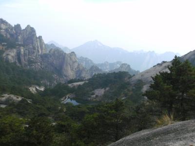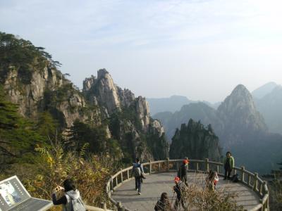 Am Wochenende war ich mit andern am Huang Shan (Gelbe Berge), der hier auch in der „Nähe“ ist. Er ist dreieinhalb Stunden Busfahrt durch hügelige Gegend nach Westen in die Nachbarprovinz Anhui (Friedliches Abzeichen) entfernt. Das Gebirge ist seit dem 8. Jh. unter diesem Namen bekannt, angeblich in Anlehnung an den Gelben Kaiser. Es hat steil aufragende Felsen und seltsame Formen, wurde über die Jahrhunderte oft gemalt und war auch die Inspiration für die teils schwebenden Berge im Film Avatar, wo sich die Hauptfigur einen Drachenvogel fängt – denn hier gibt es öfters Wolkenmeere, aus denen einzelne Gipfel des Gebirges herausragen, welches ich aber leider nicht gesehen habe.