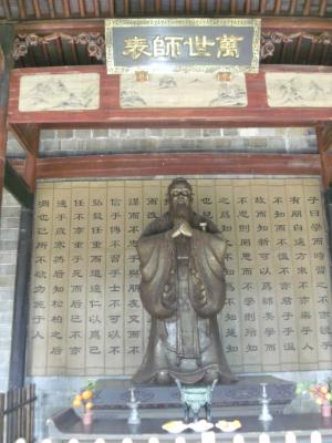 Konfuzius (Kong Zi) lebte 551-479 v.Chr. Er wurde in Qufu (Provinz Shandong) geboren und starb auch dort. Seit etwa der Han-Dynastie (die etwa um 200 v.Chr. begann) war der Konfuzianismus sehr einflussreich – und dementsprechend auch seine Familie, insbesondere seine direkten Nachfahren. Seine Familie hat heute den längsten Stammbaum der Welt. Von Konfuzius selbst ist übrigens nichts Schriftliches direkt überliefert, so wie beim griechischen Sokrates.