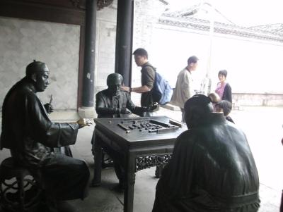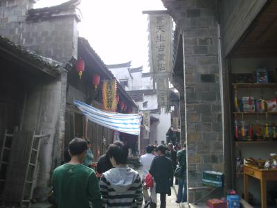 Nun zurück zu Quzhou. Die Exkursion wurde wieder vom Zhejiang-TV organisiert. Wir sahen etwa eine Grotte, die vor etwa 2500 Jahren errichtet wurde, von der niemand so richtig weiß, für was sie da war und auch nicht, wie sie gebaut werden konnte; eine nachgebaute alte Stadt; und den Tempel des Südlichen Konfuziusclans. Konfuzius lebte ursprünglich vor 2500 Jahren in Qufu im nordöstlichen Shandong. Vor etwa 1000 Jahren in der Song-Zeit spaltete sich die Familie aufgrund von Eindringlingen aus dem Norden auf und der angeblich wichtigere Teil wanderte nach Quzhou (ich hab das alles nicht so genau nachgeprüft). Dort leben heute noch immer Nachfahren und einen Abkömmling der 75. Generation durfte ich sehen (fragt mich jetzt aber nicht, wie direkt er ein Nachfahr war).