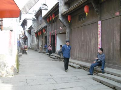 In der alt aussehenden Stadt Huanglongxi (Gelber-Drachen-Bach)