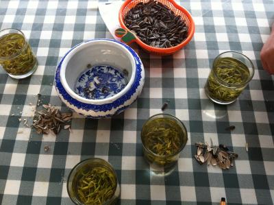 Ich hab mich öfters mit „Chinesisch als Fremdsprache“-Studentinnen getroffen, die mir vor allem Essen und nette Sprüche (wie z.B. Chengyu = Redewendungen bestehend aus meist 4 Schriftzeichen/Silben, zu denen es jeweils alte Geschichten gibt) beigebracht haben; z.B. aß Zhu Yuanzhang, der Gründer der Ming-Dynastie aus dem 14. Jahrhundert, gerne den „Drei-Gelb-Fisch“ aus Taizhou. Oder man sagt etwa „Ich bin beim Sojasauce kaufen“ und man meint „Das geht mich nichts an“. Oder wenn ein Mann von seiner Frau betrogen wird, dann trägt er eine „grüne Mütze“, etc. …