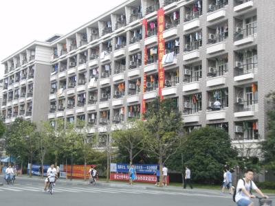Der Zijingang-Campus ist weiter außerhalb, viel großzügiger von der Fläche her und erst ein paar Jahre alt, wenn ich es richtig verstanden habe, dazu mit der angeblich größten Mensa Asiens, in der es auch sehr viel Auswahl gibt. Das vorletzte Bild ist ein normales Studentenwohnheim. Und ich lebe in einem Haus wie auf dem letzten Bild. Wie ich inzwischen festgestellt habe, wohne ich in einer Wohnsiedlung gleich neben dem Campus und nicht auf dem Campus selbst.