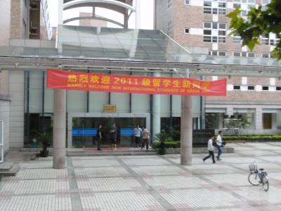 Der Yuquan-Campus ist eben wie gesagt mehr in der Innenstadt, dichter bebaut und älter. Das erste Bild ist das Eingangstor, auf dem zweiten ist ein Willkommensgruß für ausländische Studenten, die Statue unten ist eine Mao-Statue (von Mao Zedong, praktisch dem Gründer der KP Chinas).